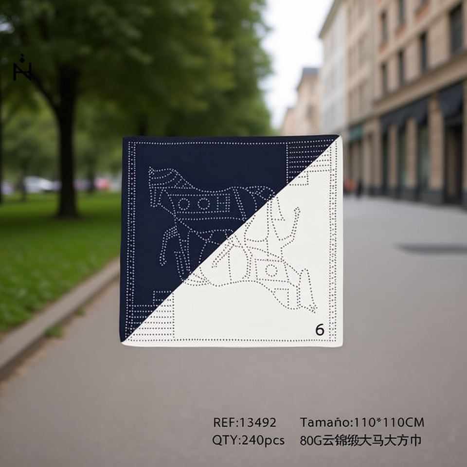 Z Brand Big Horse Square Scarf 110x110Cm Cloud Brocade Design For Men Women