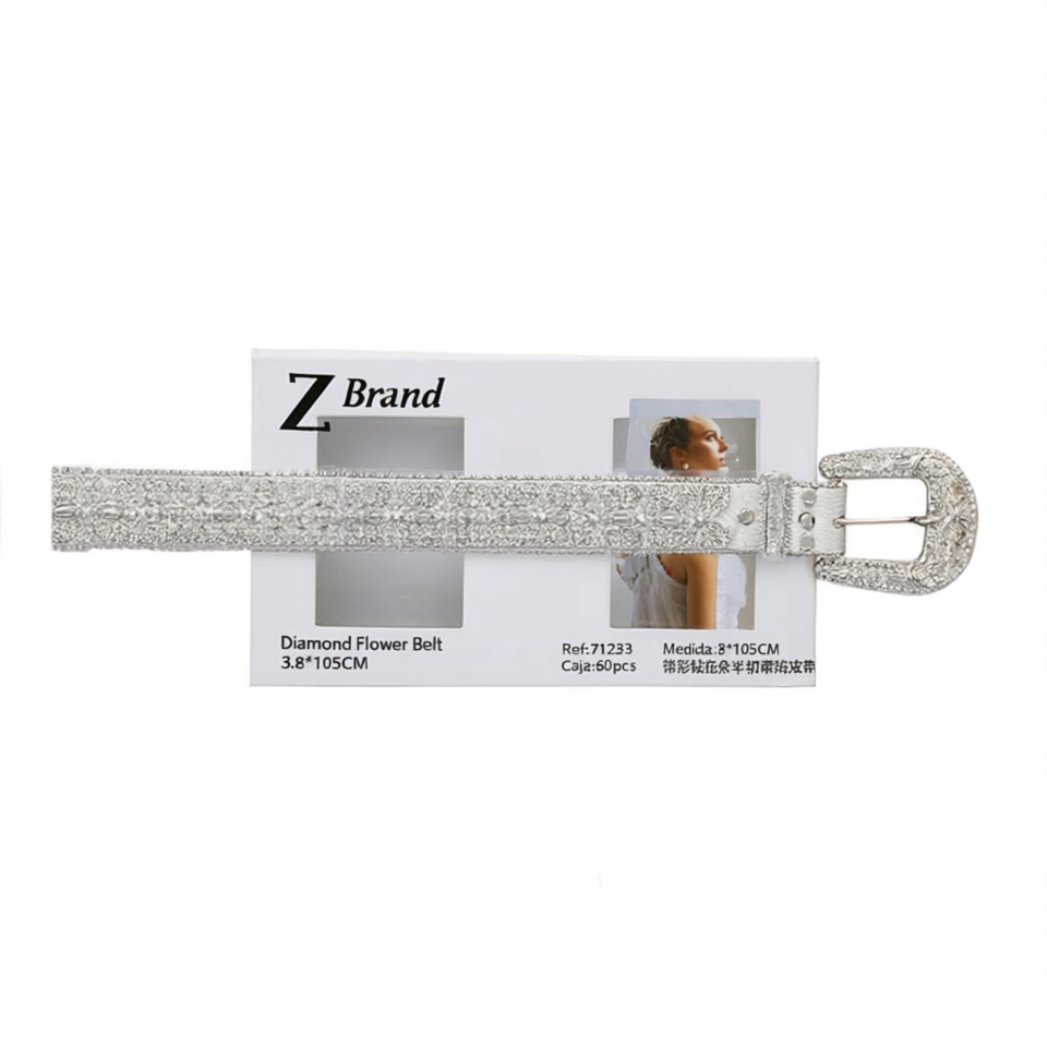 Cintura con Fiori di Diamanti Marca Z 3.8*105Cm in Pelle con Strass per Donna Accessorio di Moda