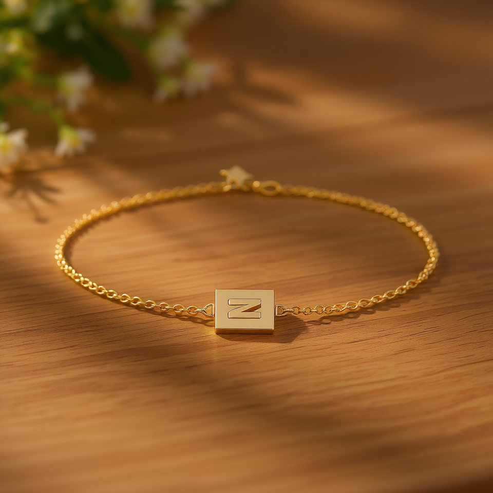 Bracciale Unisex in Acciaio Inossidabile Placcato Oro con Lettera M del Marchio Z, Gioiello Trendy con Charm