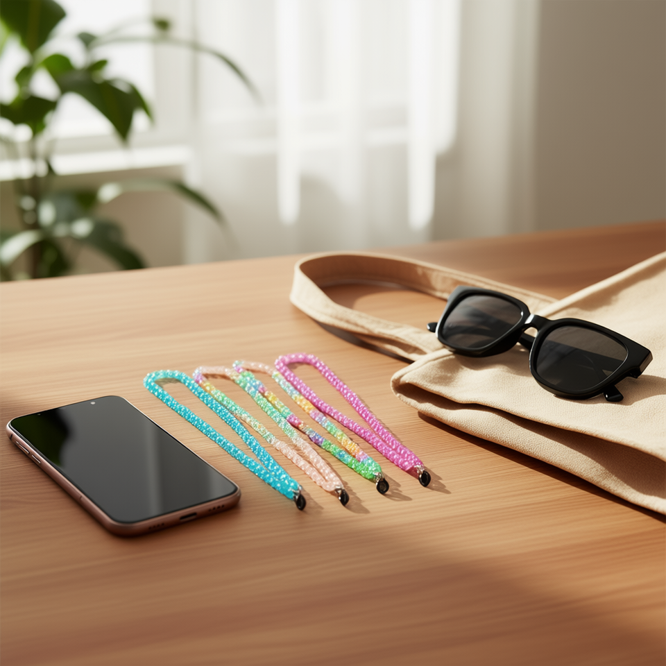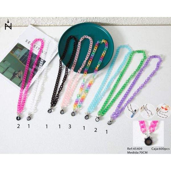 Catena in plastica marca Z da 70 cm con fibbia sfumata multicolore per occhiali, borsa e accessorio per telefono