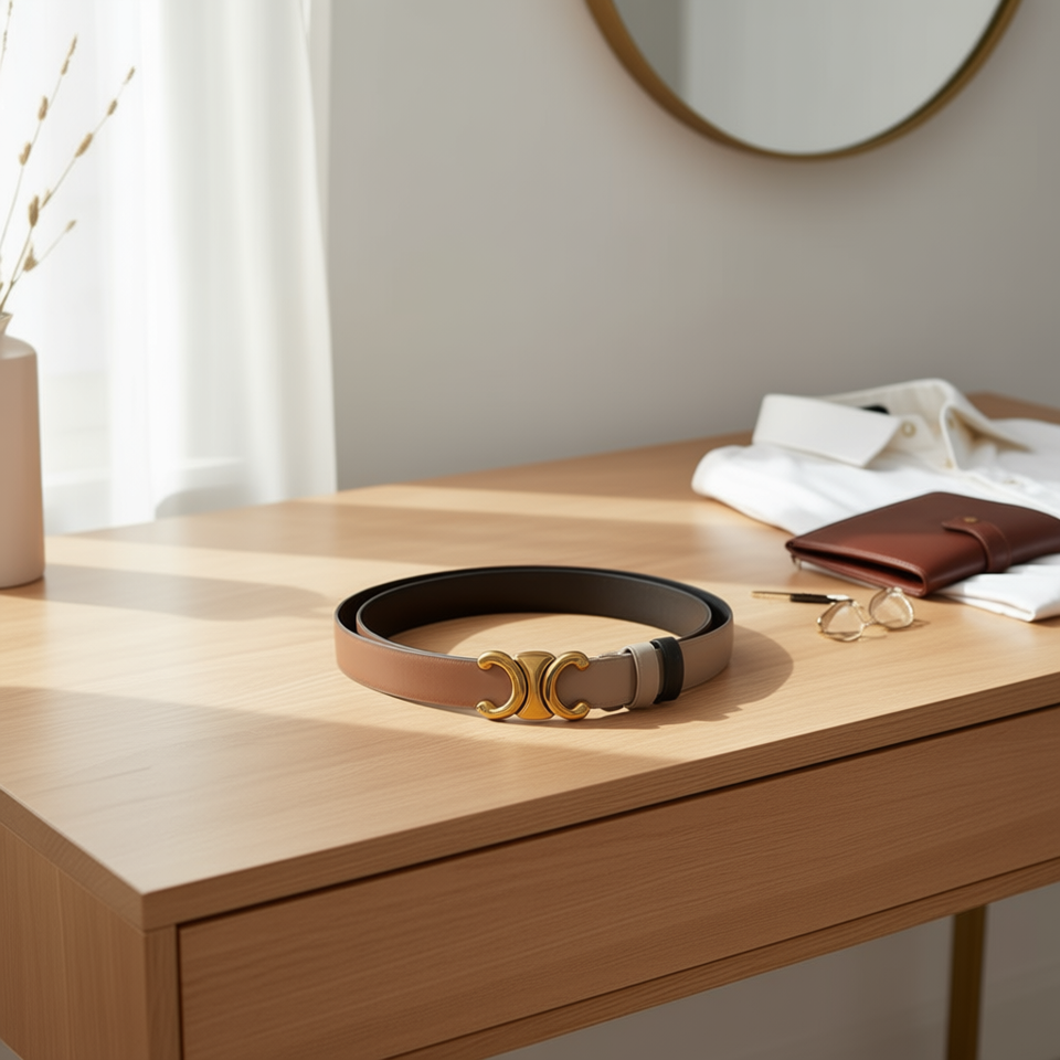 Z-Cora Double C Buckle 2.3Cm Genuine Leather Reversible Belt For Women Men