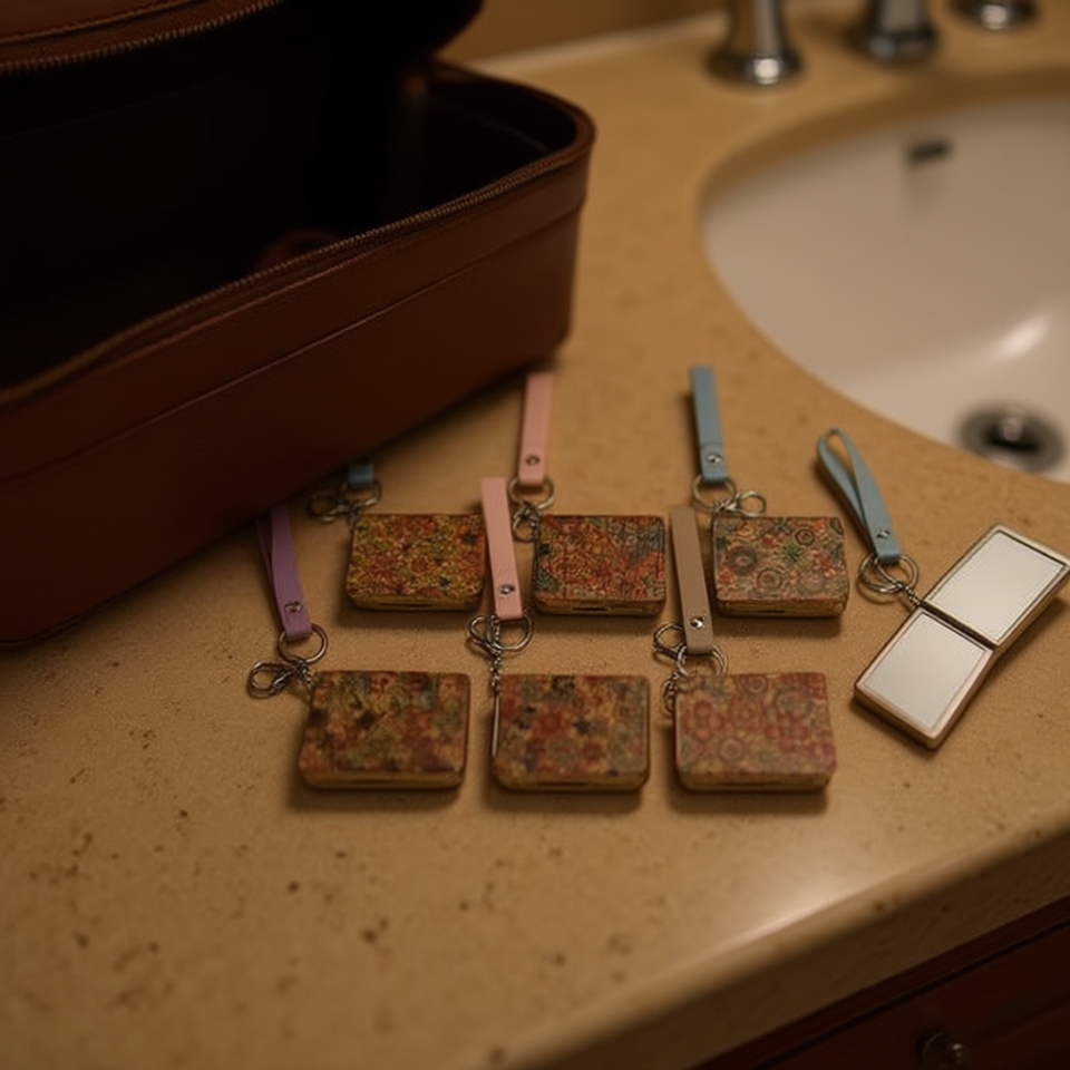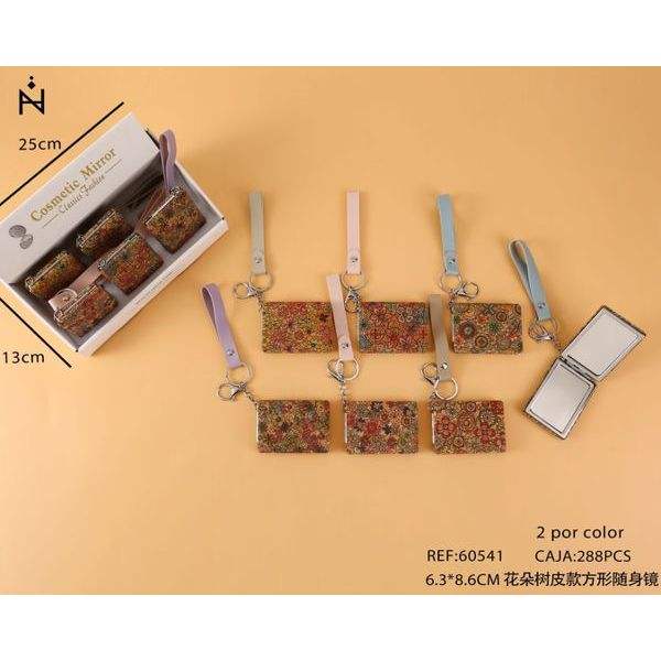 Z Cosmetic Mirror 6.3x8.6Cm Floral Bark Style Square Pocket Mirror With Strap For Women Makeup Use