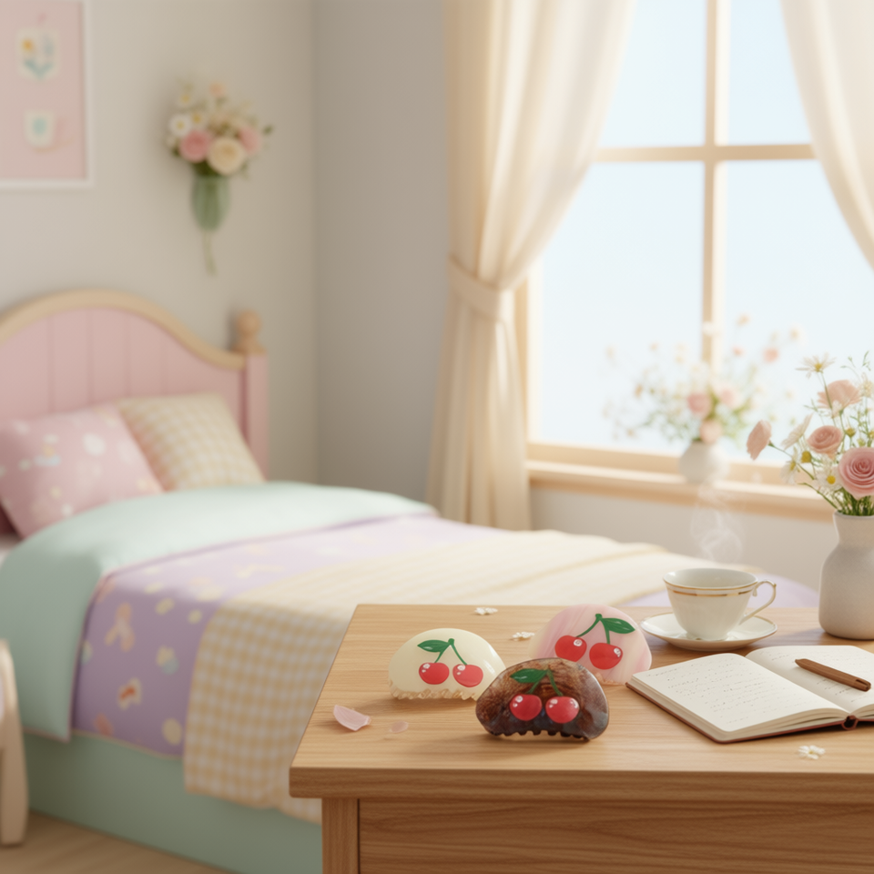 Fermagli per capelli Z Cherry 8 cm in acrilico decorativo per donna, stile casual dolce
