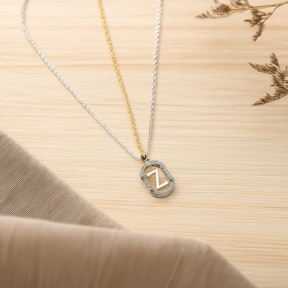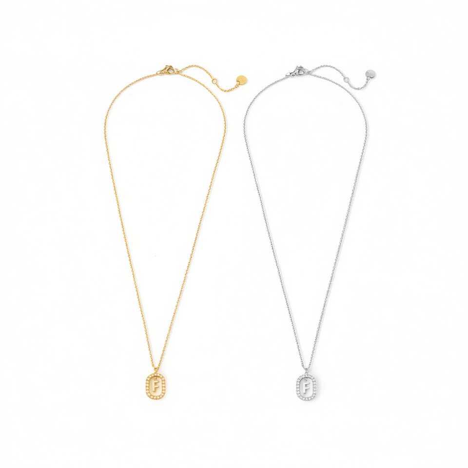 Z Initial F Pendant Necklace Stainless Steel Diamond Accented Gold Silver Tone Fashion Jewelry Unisex Gift Trendy Letter Charm