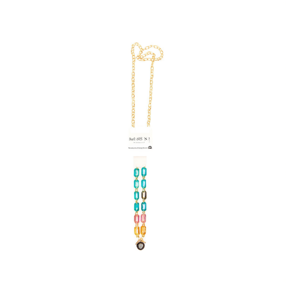 Collana con perline Z Line Fashion, catena placcata oro da 70 cm con pietre colorate, accessorio gioiello da donna
