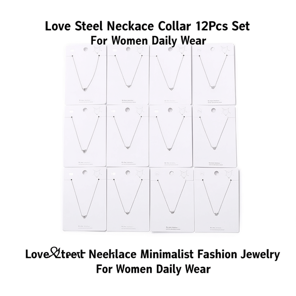 Z Love Steel Choker Necklace 12Pcs Set Minimalist Silver Plated Stainless Steel Daily Wear Women's Jewelry Gift