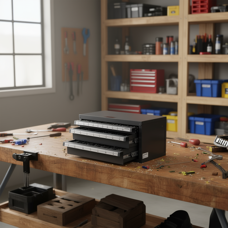 Dispenser per punte da trapano in acciaio Z con 3 cassetti, organizer impilabile da A a Z per la conservazione degli utensili con etichette