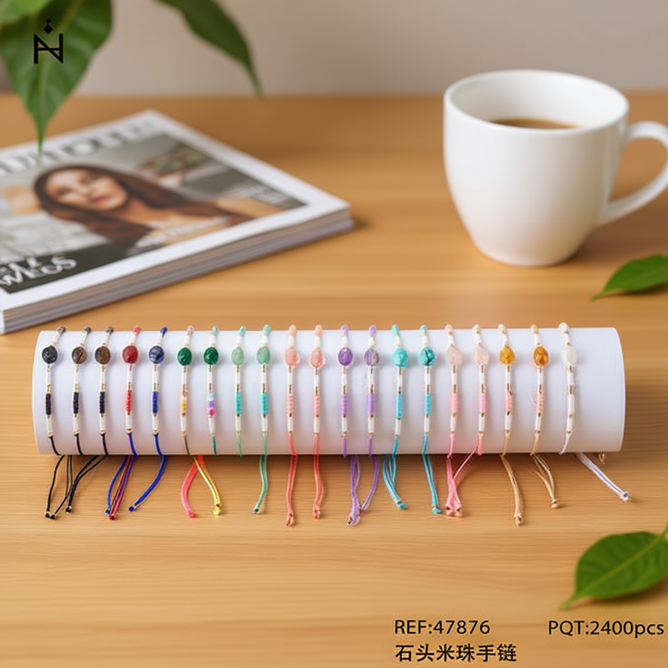Bracciale con perline di riso Z Stone, gioielli alla moda regolabili multicolori, lotto da 2400 pezzi