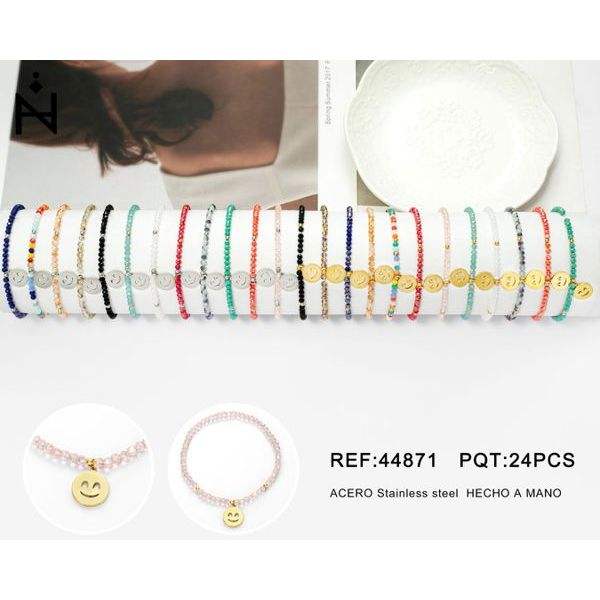 Z Zhou Beaded Bracelets 3cm Gold Plated Smiling Face Charm Stainless Steel Jewelry Set 24pcs Unisex Everyday Wear
