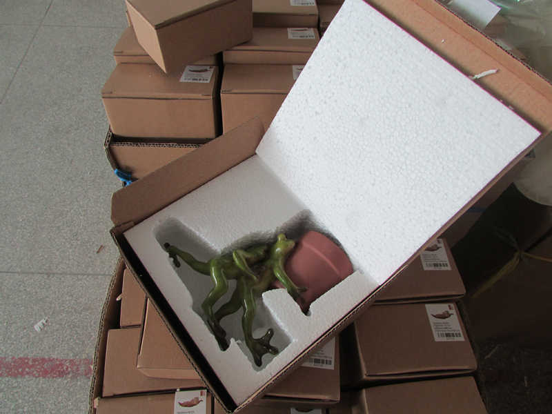 Borsa PP + polyfoam + scatola interna + cartone esterno Mini statua di animali statuette di rana micro paesaggio terrario statua