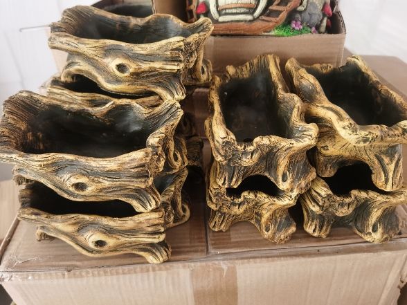Vaso per Piante Z771 a Forma di Tronco d'Albero in Cemento, Mini Vaso Pastorale per Fiori, Succulente ed Erbe, Riutilizzabile