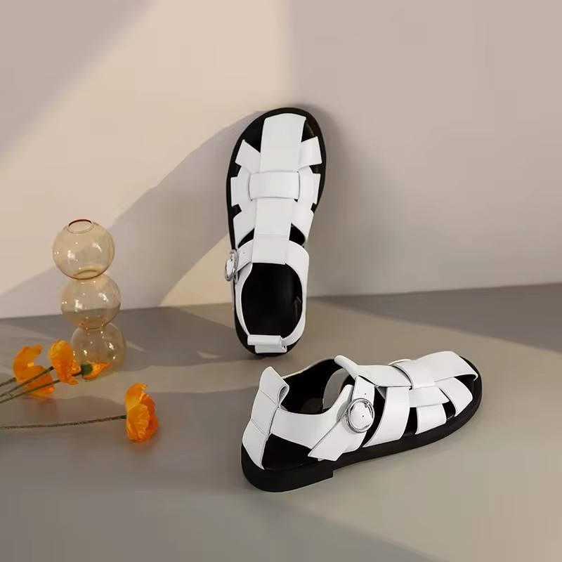 ZA New Plus Size 34-42 New Genuine Leather Sandals Women Shoes Buckle Flat Sandals Ladies Summer Casual Shoes Footwear