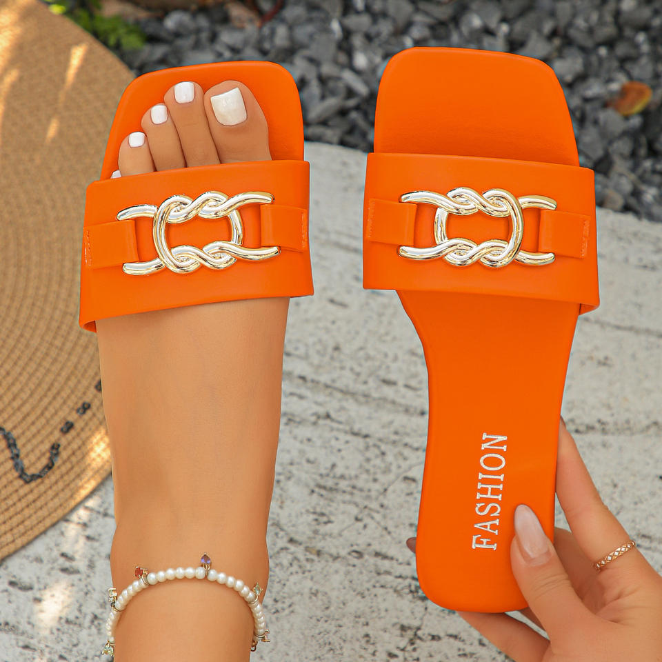 ZA Wholesale Classic Summer Slides Ladies Sandals Fashion PU Leather Outdoor Female Shoes Non-slip Flat Bottom Women's slippers