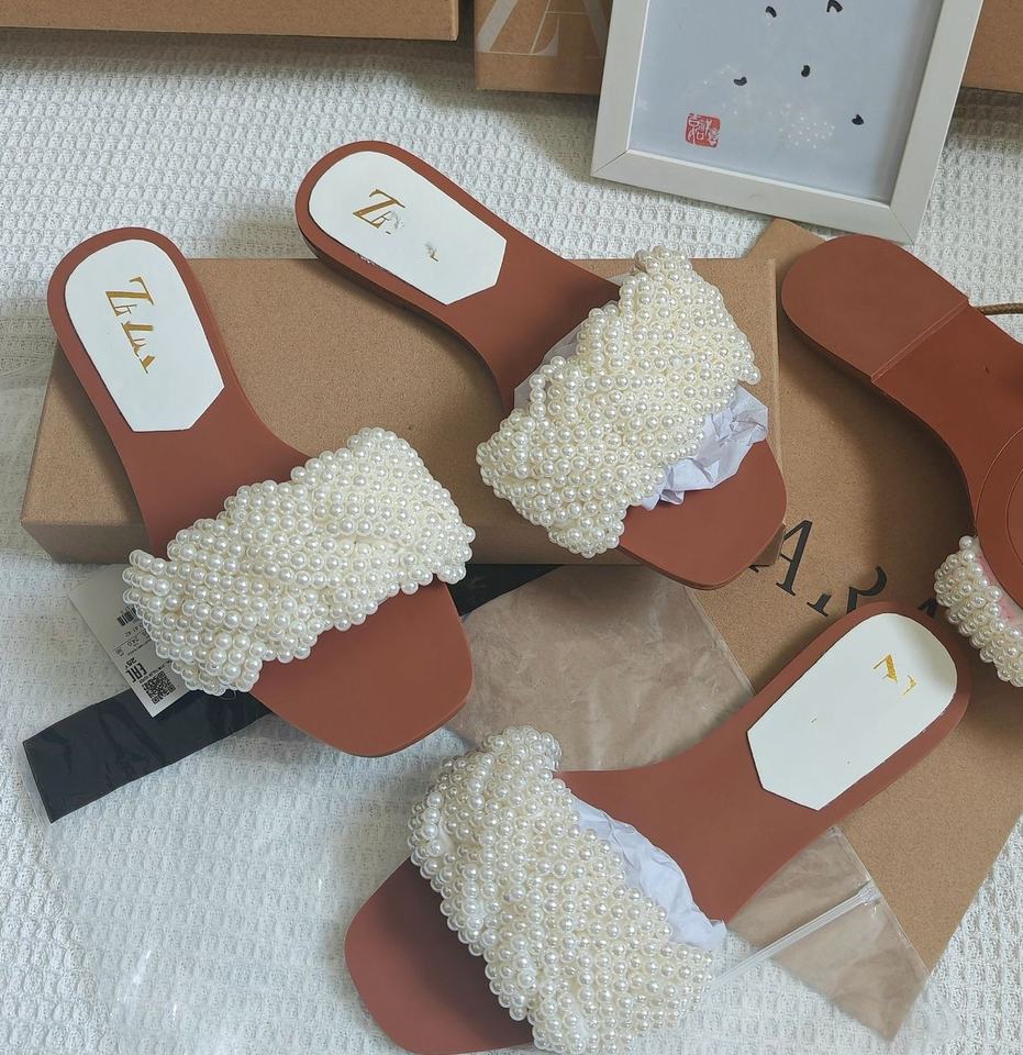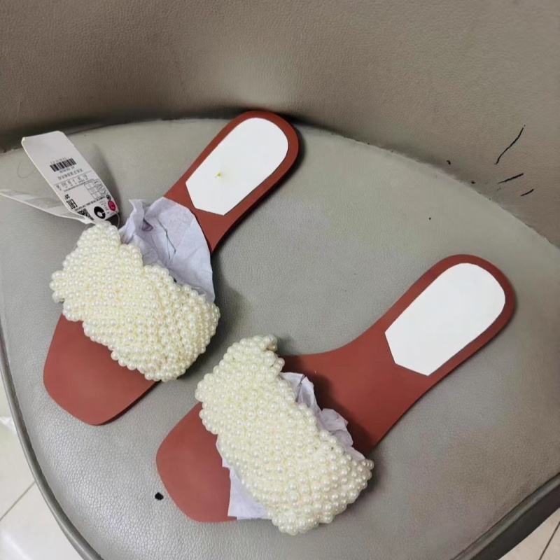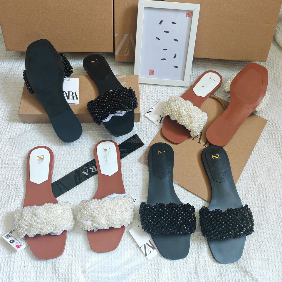 ZA2026 Women's Spring New Outdoor Sandals White Pearl Woven Flat Platform Shoes Luxury Women Slip-On Women Sandals