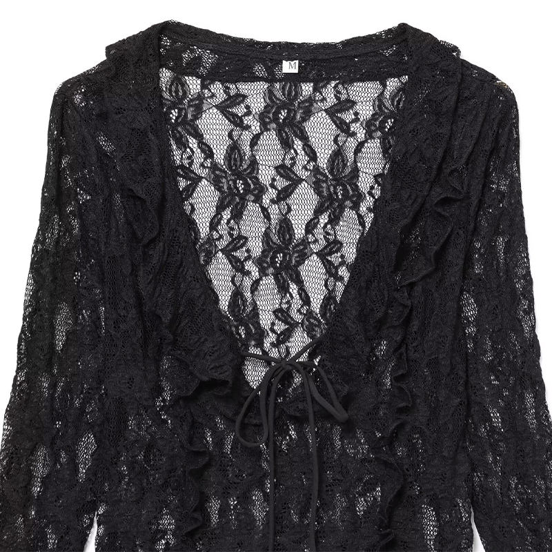 ZATRHMBM Summer Women's Clothing 2025 New Fashion Lace Decoration Lace Top Retro Classic Black Casual Women's Shirt