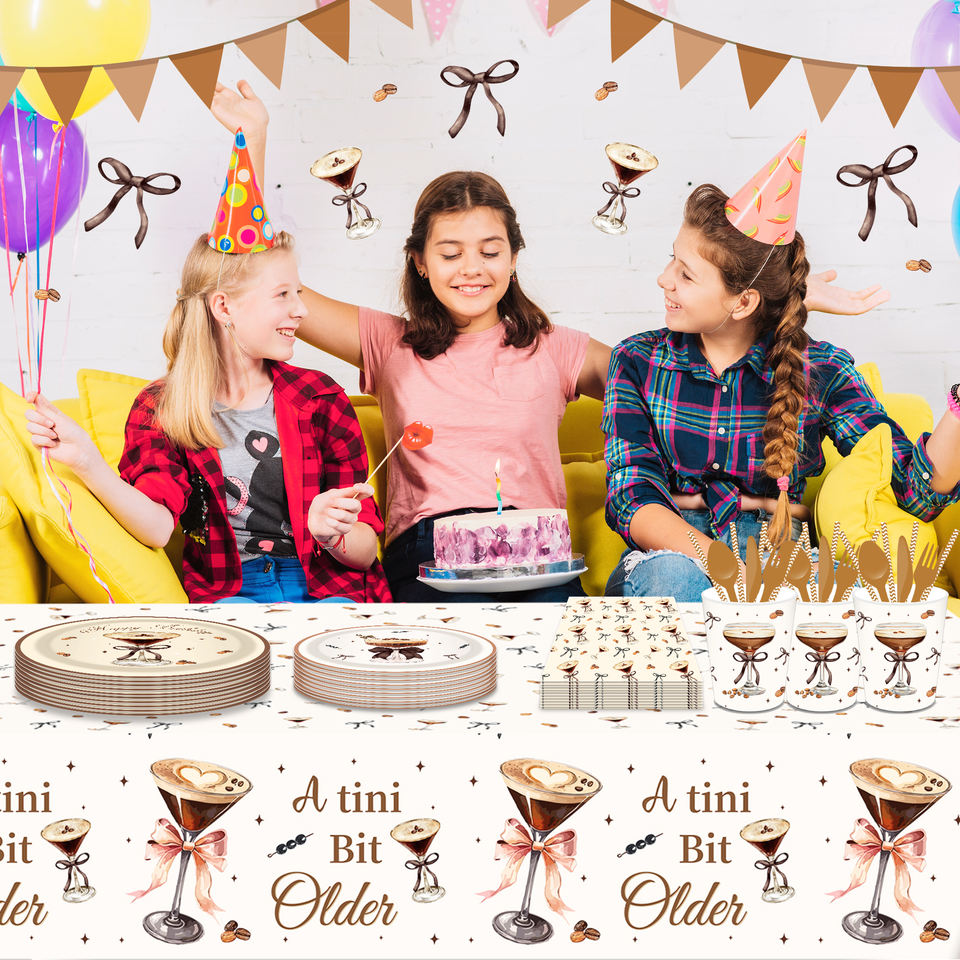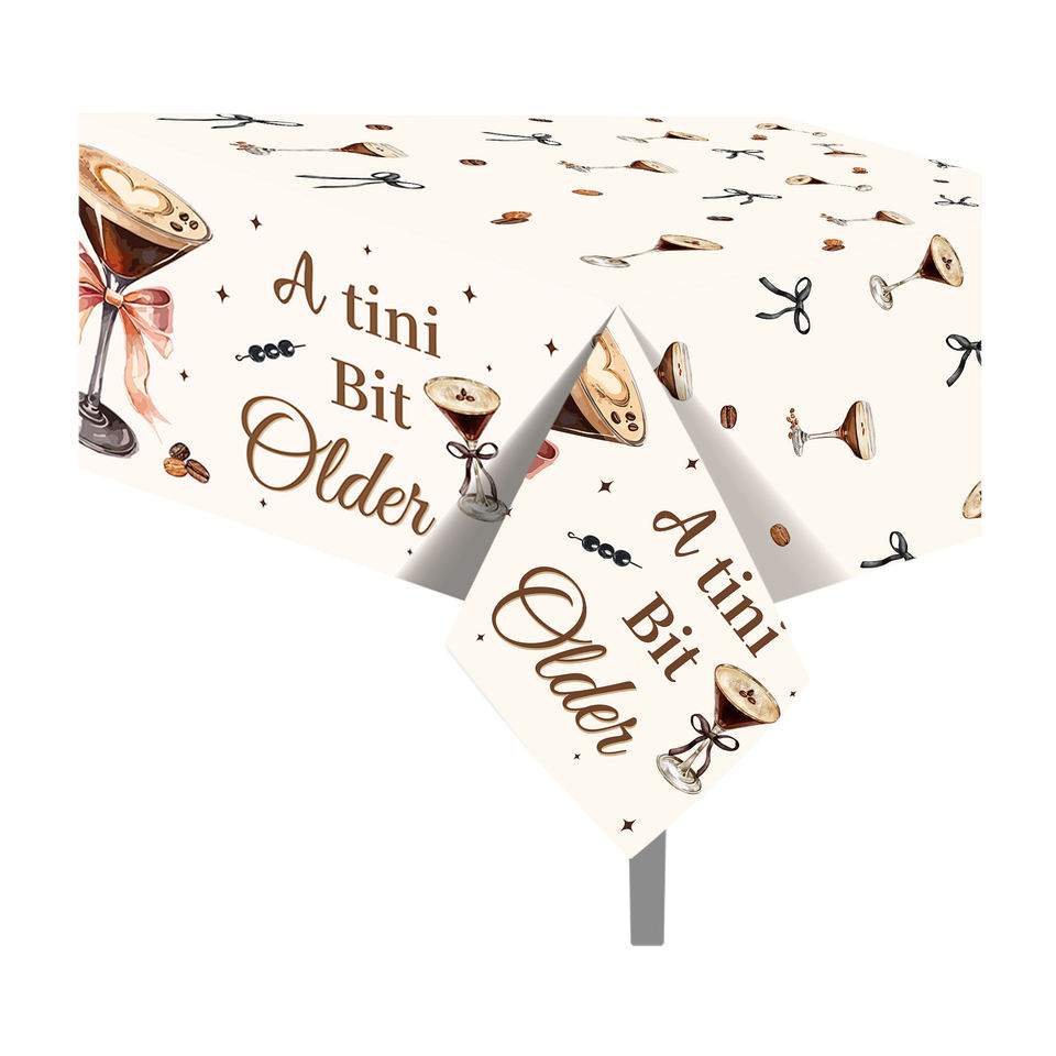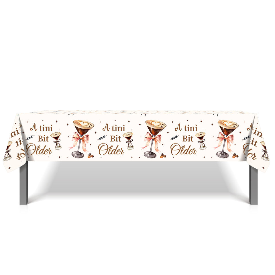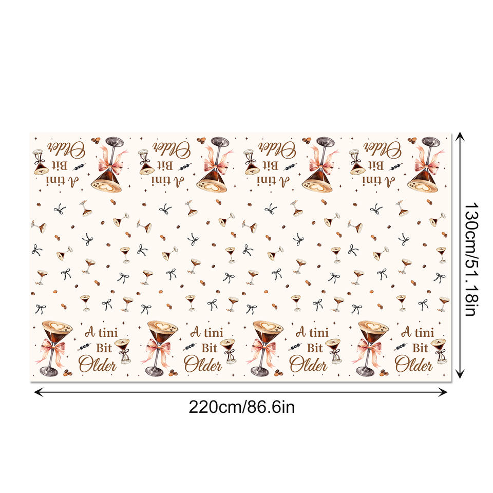 ZB360 Espresso Martini PE Tablecloth Martini Bar Plastic Table Cover for Martini Bachelorette Party Birthday Party Decorations