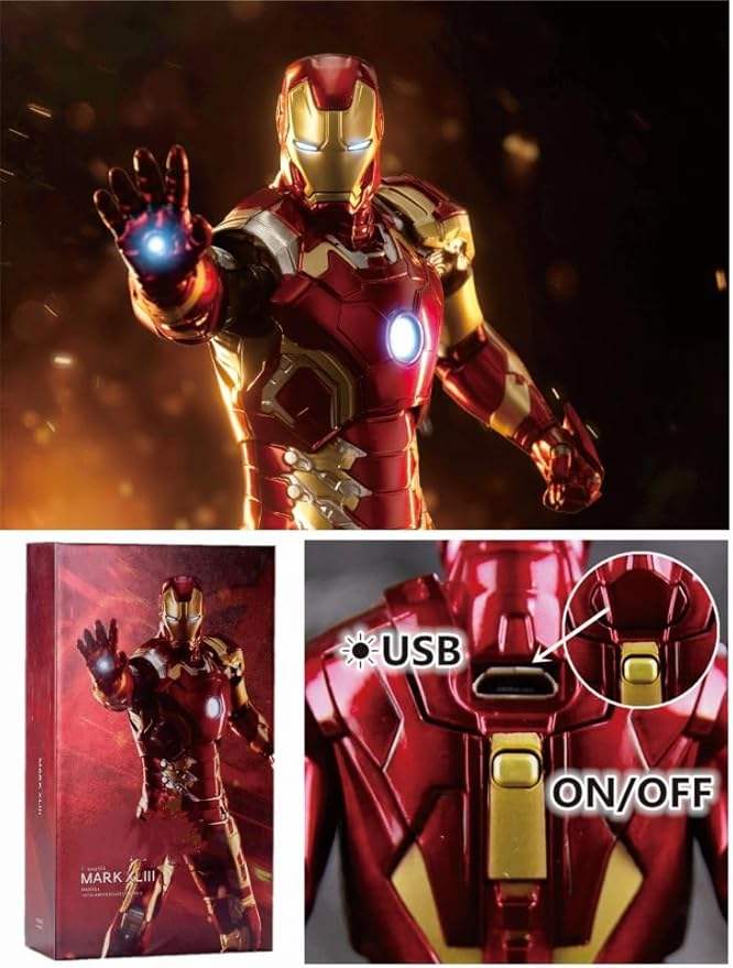ZD TOYS Figura d'azione Iron Man MK43 luminosa LED, scala 1/10 (18 cm) in ABS/PVC con accessori, 1 pz collezionabile