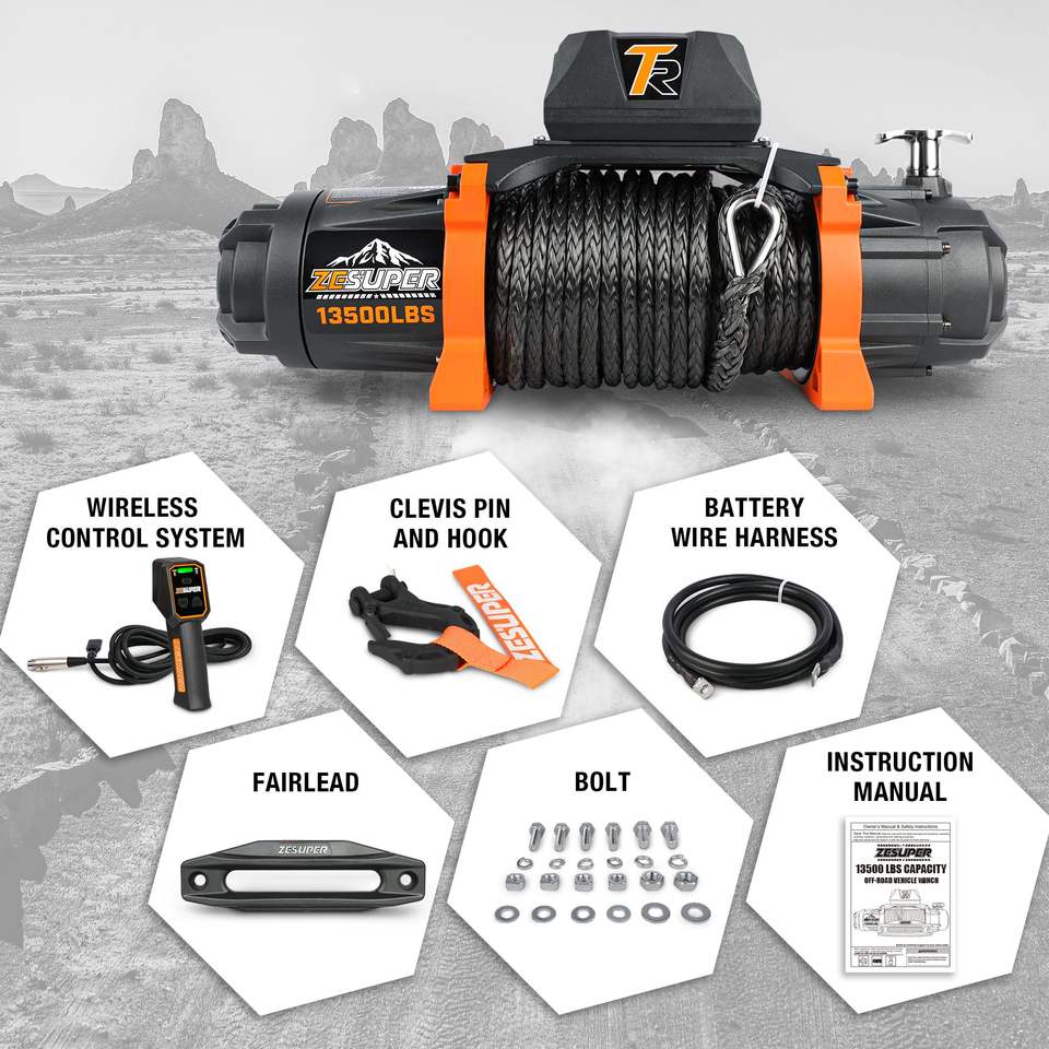 ZESUPER 12V Kit verricello elettrico 13500 lb capacità di carico impermeabile IP66 corda sintetica gancio Hawse cablato maniglia modello D0100HXFAB6