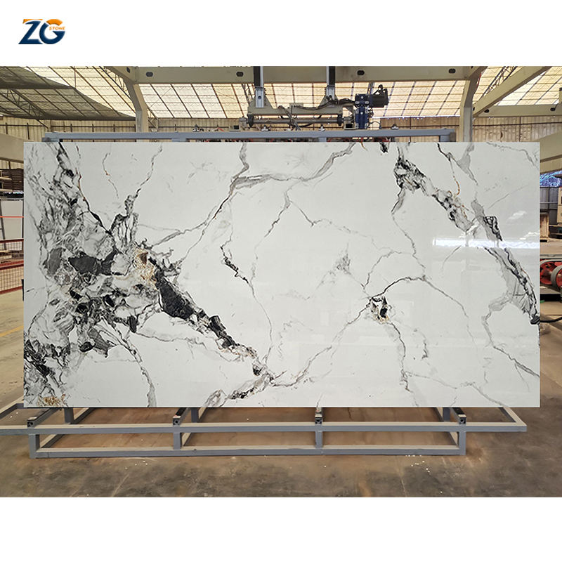ZGSTONE Wholesale Black Calacatta White Sintered Stone Slate Countertop Luxury Matte Marble Slabs Interior Outdoor Hall Flooring