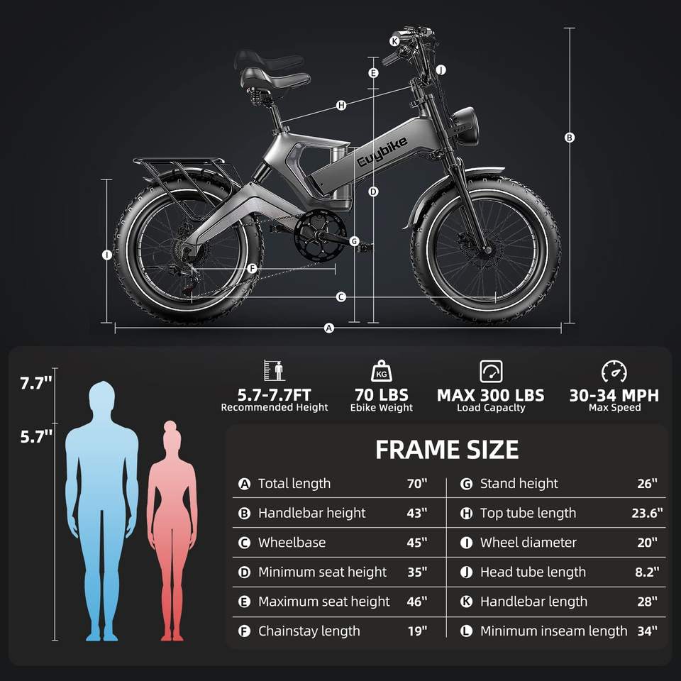 ZHENGBU K6F e-bike pieghevole 20"×4.0, motore 1000W brushless, batt. 48V 14.5–20Ah, sosp. full, freni idr. F/R, 50 km/h