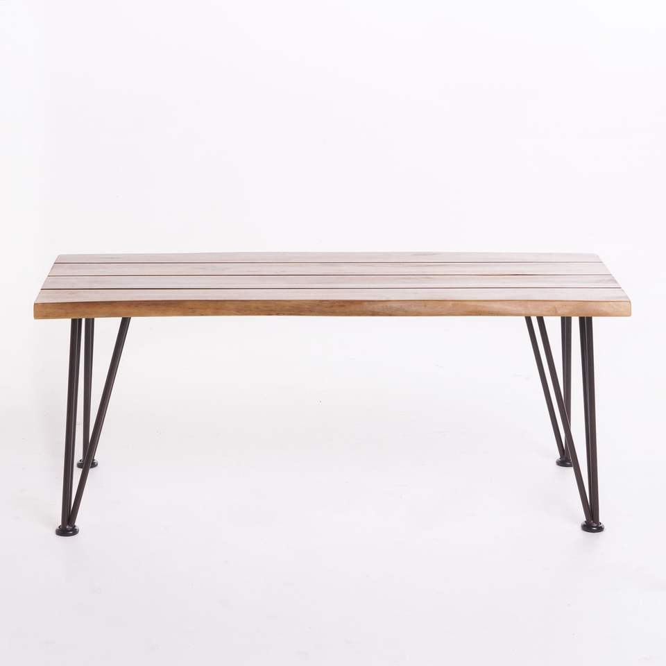 Tavolino da Caffè ZION INDUSTRIAL in Legno e Metallo, Elegante Arredo da Esterno per Intrattenimento all'Aperto