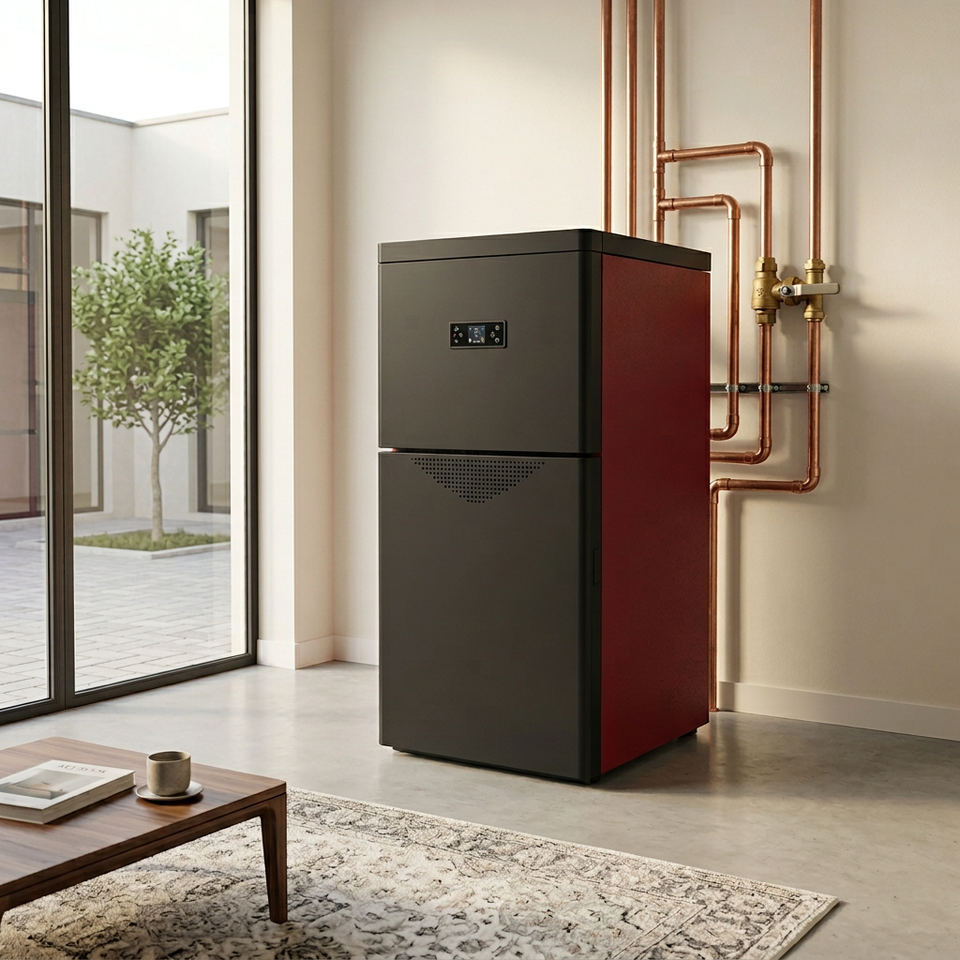 ZLGT3001A 27.5KW Caldaia Ecologica Intelligente per Riscaldamento Acqua, Stufa a Pellet Idro in Acciaio Nero