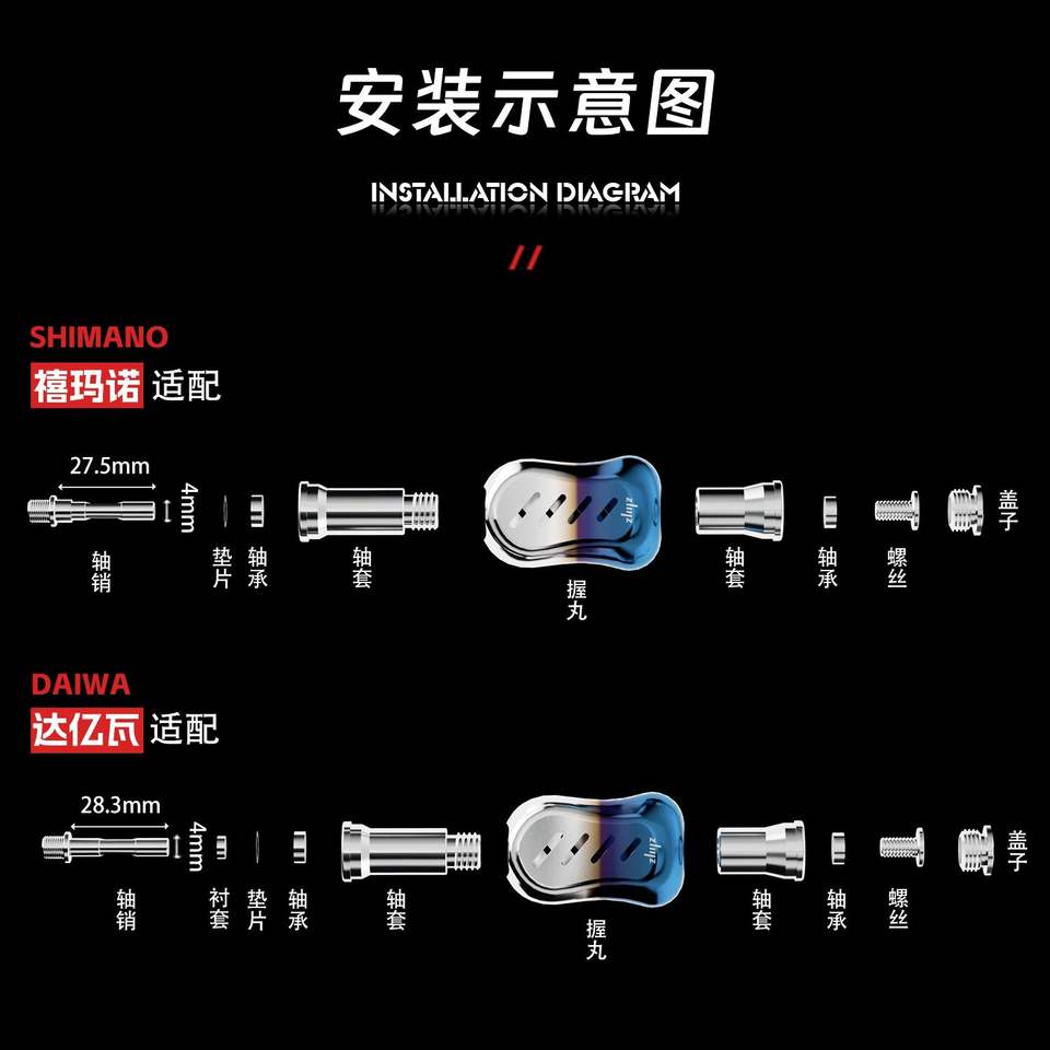 Manopole per Manovella di Mulinello da Pesca ZLIILZ Polestar in Lega Rivestita in Titanio, Compatibili con LOONGZE DC, Daiwa Tatula, Shimano Montani