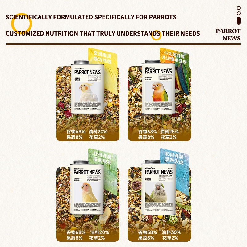ZOOLIN Mangime Naturale per Uccelli all'Ingrosso, Formula Multicereali con Frutta e Semi, Nutrizione Bilanciata per Pappagalli, Cacatua e Pappagallini