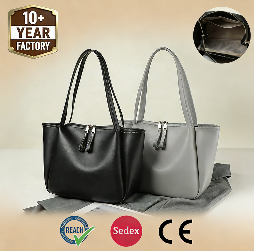 Borsa Tote ZP8000 WEEKS Personalizzabile in Morbida Pelle Nera - Borsa a Spalla con Cerniera di Grande Capacità alla Moda per Donne (OEM/ODM Accettati)
