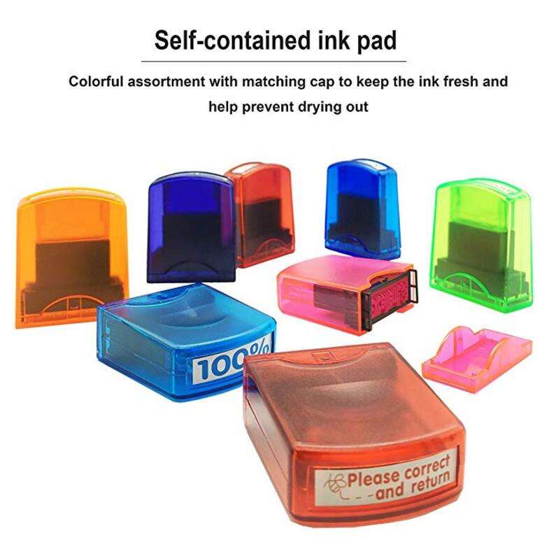 Nome del prodotto:Timbro di auto-inchiostrazione timbro di valutazione della scuola insegnante Set con vassoio di stoccaggio