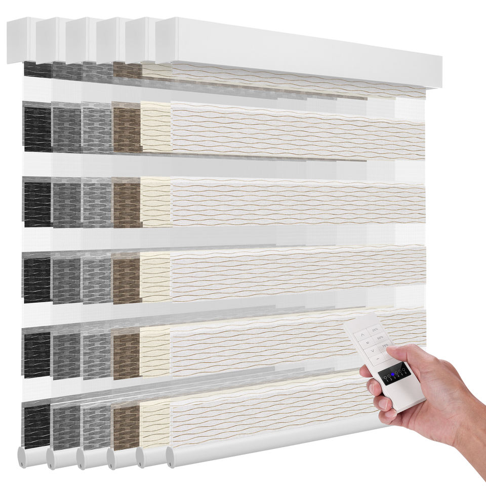 Tende a Rullo Zebra a Doppio Strato ZSTARR con Controllo Remoto Motorizzato Intelligente per Filtraggio della Luce Giorno e Notte per Finestre di Casa