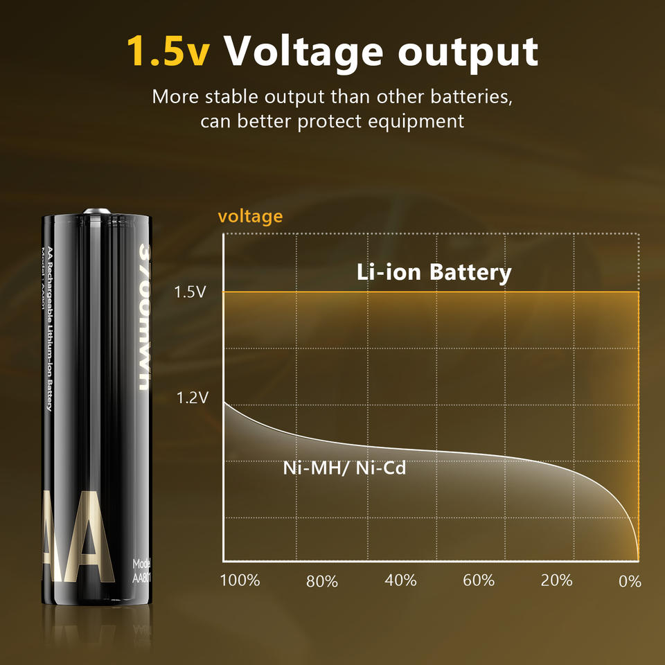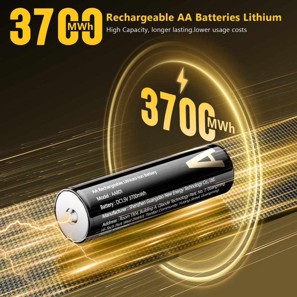ZTGF batteria ricaricabile AA agli ioni di litio 1.5V 3700mwh batterie cilindriche agli ioni di litio con caricatore
