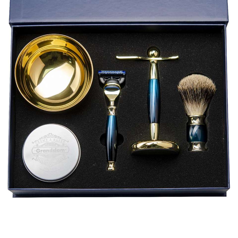 ZY Luxury Men's Shaving Tool Set 5 Blade Stainless Steel Razor with High Quality Badger Hair Brush Shaving Stand and Soap