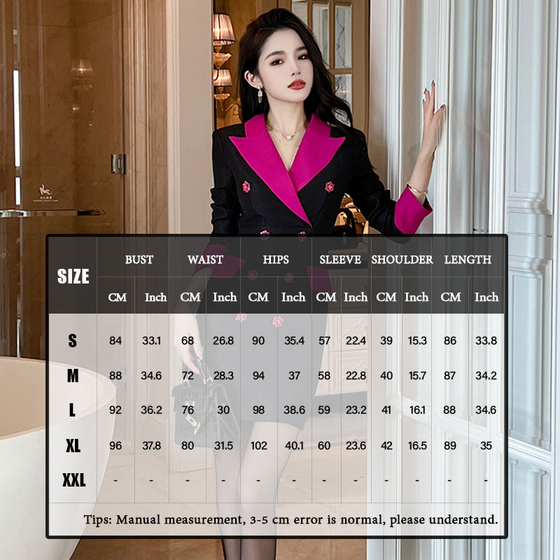 ZYHT 20721 Business formale contrasto colore donna cappotto giacca colletto con risvolto Mini abito Blazer doppiopetto