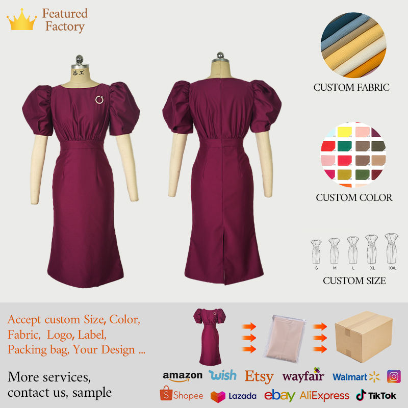 Dettagli della confezione:ZYHT 50159 nuovo abito stile casual con maniche a sbuffo stile stile Ropa De Dama Vestido abito viola elegante da donna dritta