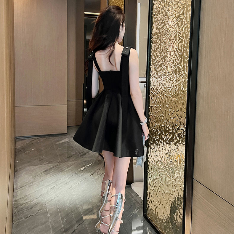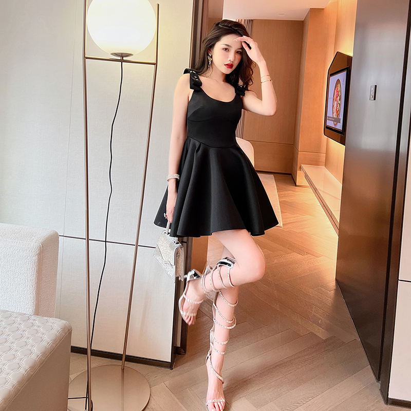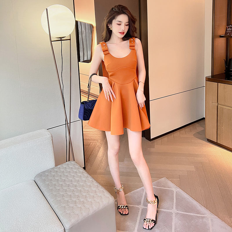 ZYHT 5854 Mini abito dolce senza maniche con cinturino largo arancione estivo Logo personalizzato abiti a vita alta con scollo a v