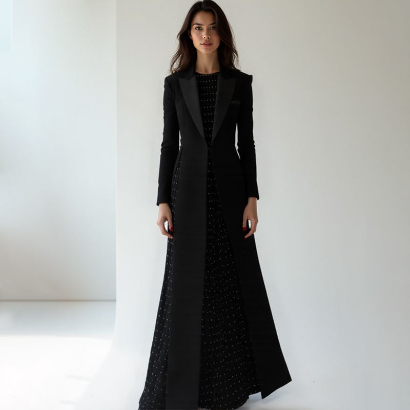 ZYHT 73248 Fashion Clothes Factory Wholesale Autumn Winter Ladies Black Women Long Maxi Blazer Jacket Thick Woolen Trench Coat