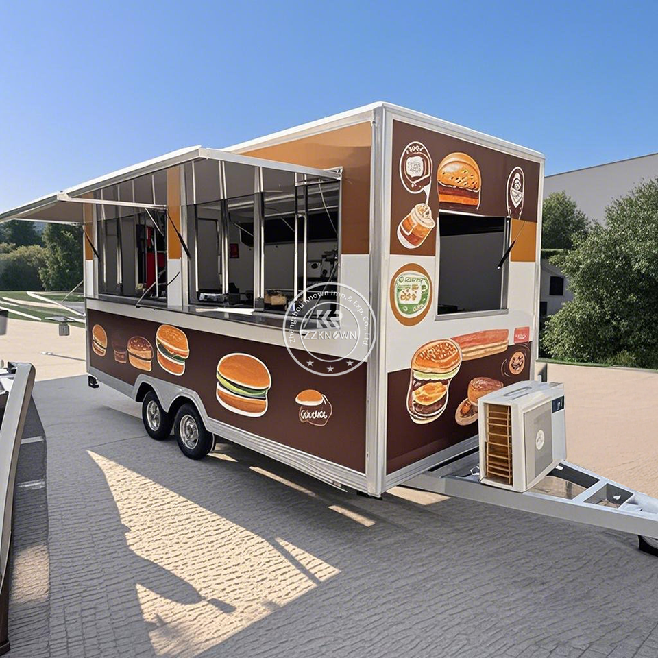 ZZKNOWN Food Trailers Fully Equipped Us Standards Mobile Kitchen Ice Cream Cart With Wheels