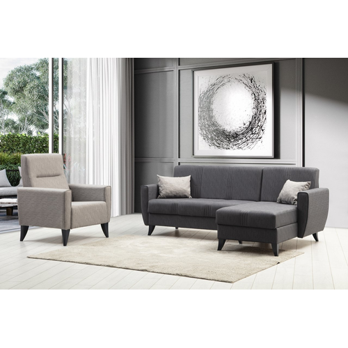 Zaden Dark Gray Storage Base L Corner Sofa and Armchair Set for Garden Use