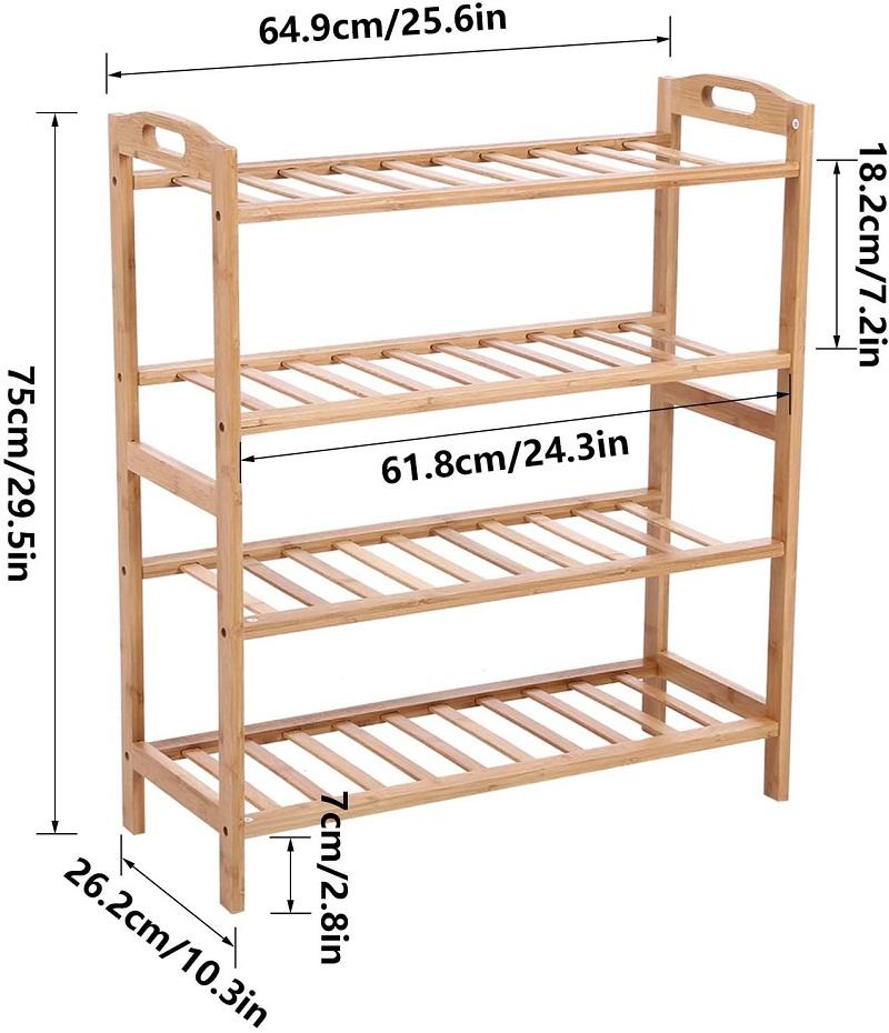 Zapatero De Bambu scarpiera in bambù per interni ed esterni armadio per interni 4 livelli organizzatore di scarpe in legno massello autoportante con manico