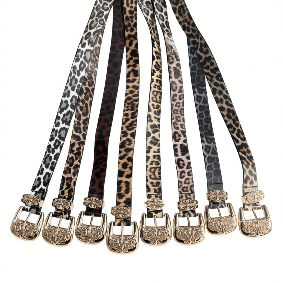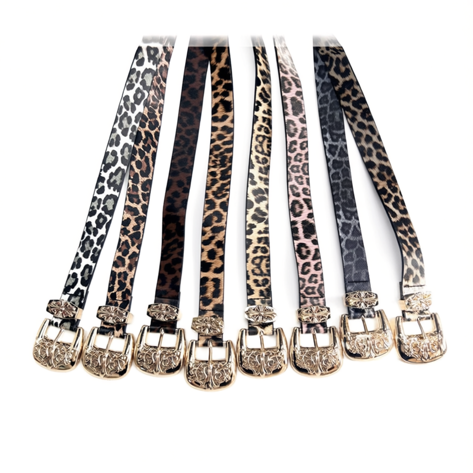 Zara Leopard Print Fabric Belt 3Cm Alloy Buckle Vintage Women Fashion Accessory