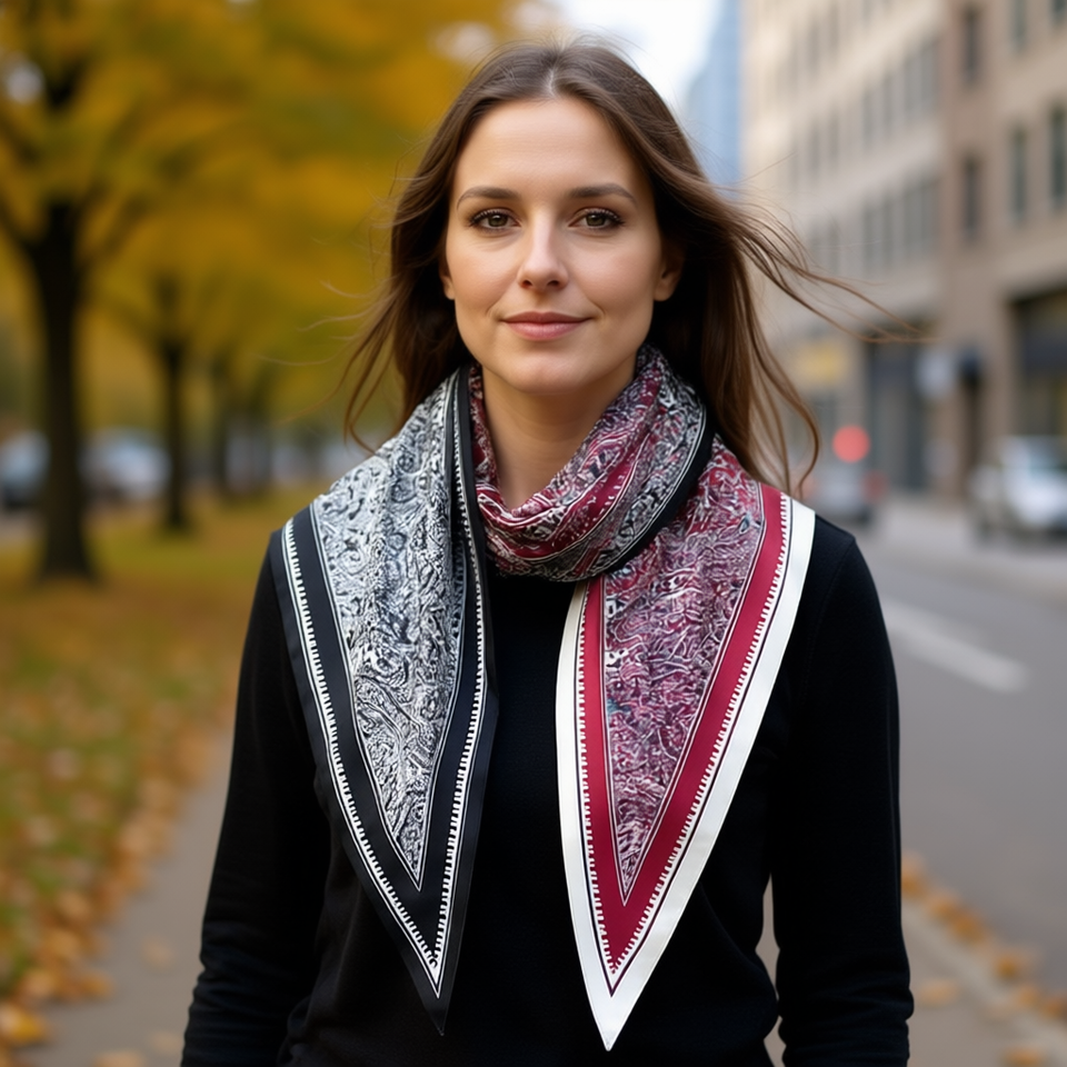 Sciarpa Triangolare Zara 135x60cm in Poliestere Stampato, Accessorio Multifunzionale per Donna per Tutte le Stagioni