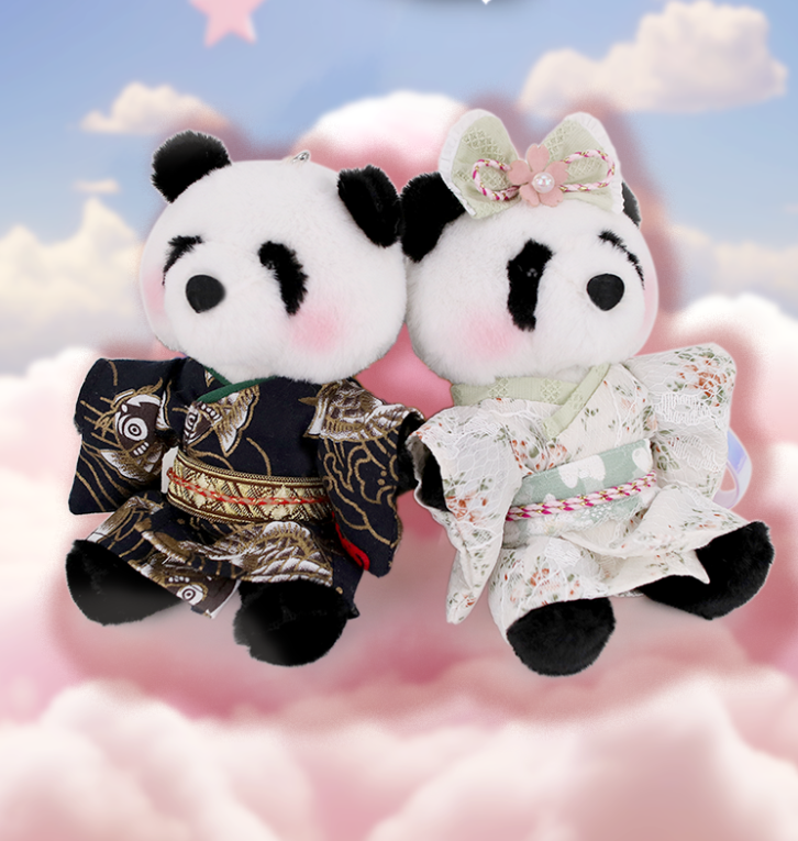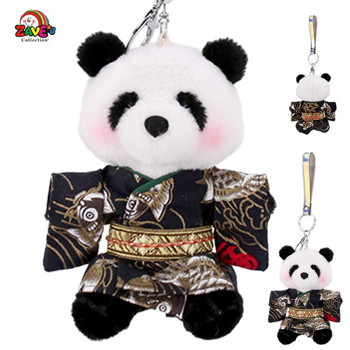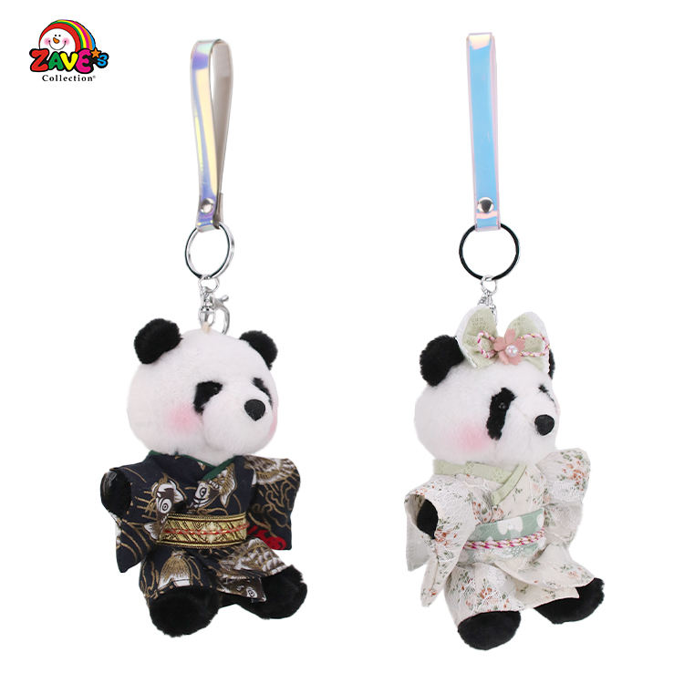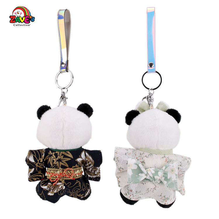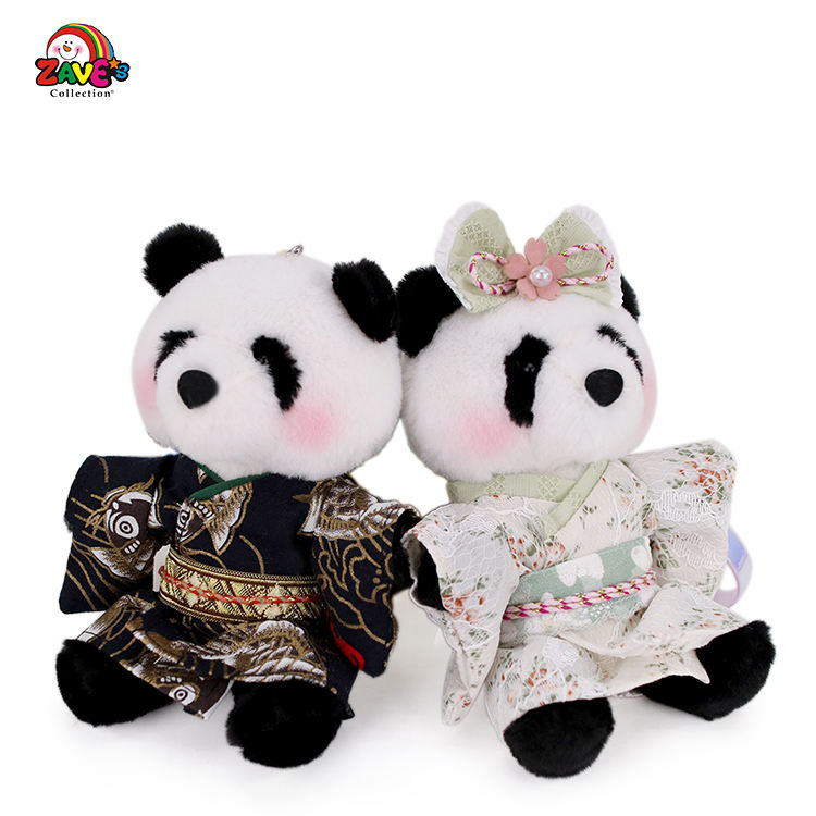Portachiavi Peluche Personalizzato Panda di Zaves Soft Toy Manufacturer, 4.75 Pollici, con Kimono Bianco e Nero, Coppia di Panda
