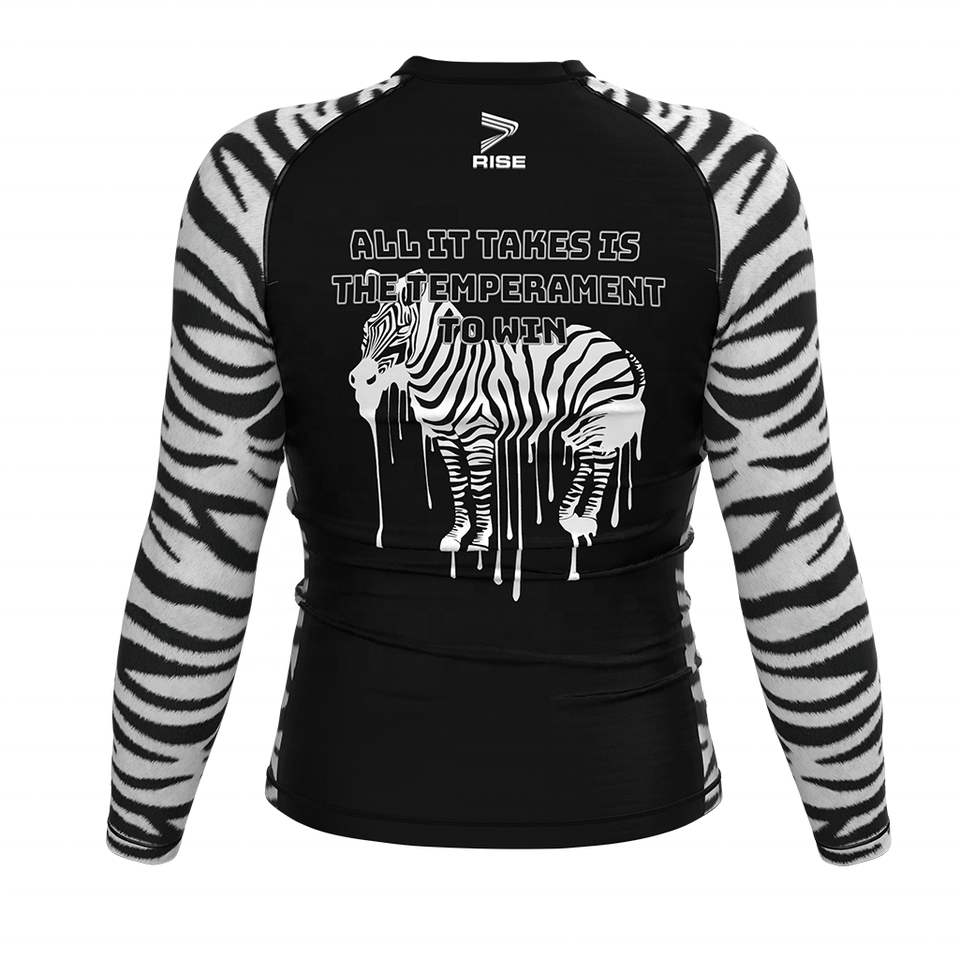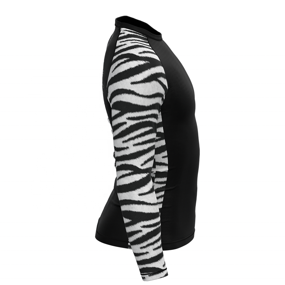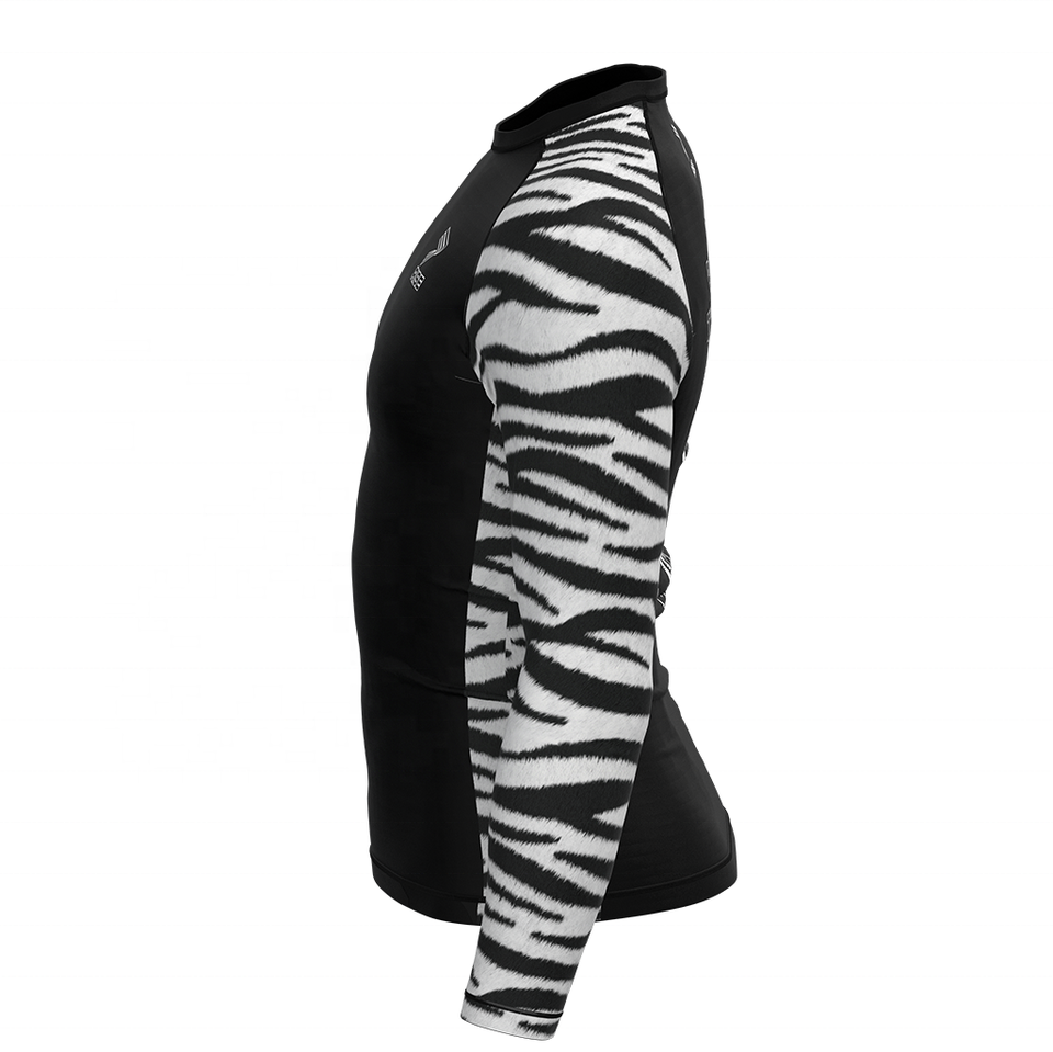 Maglietta a strisce zebrate con motivo ad alte prestazioni No Gi Rash Guard, anti-uv, asciugatura rapida, comoda a compressione