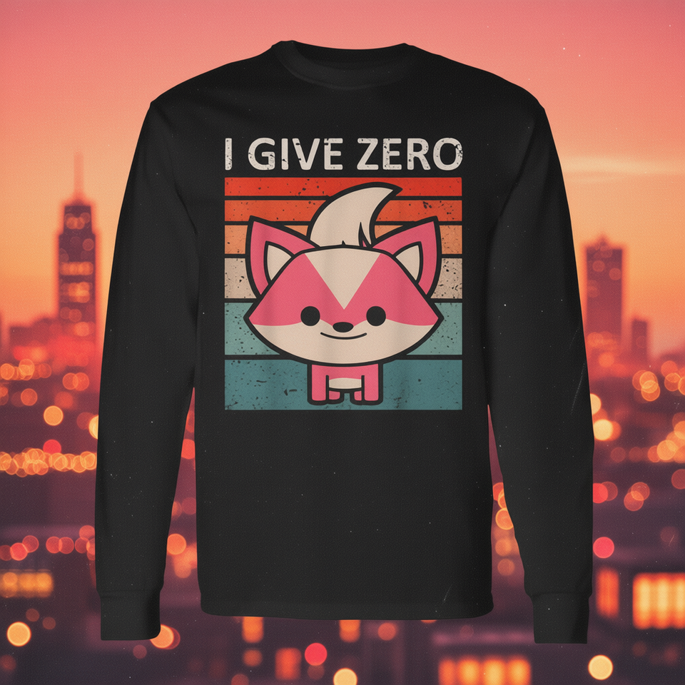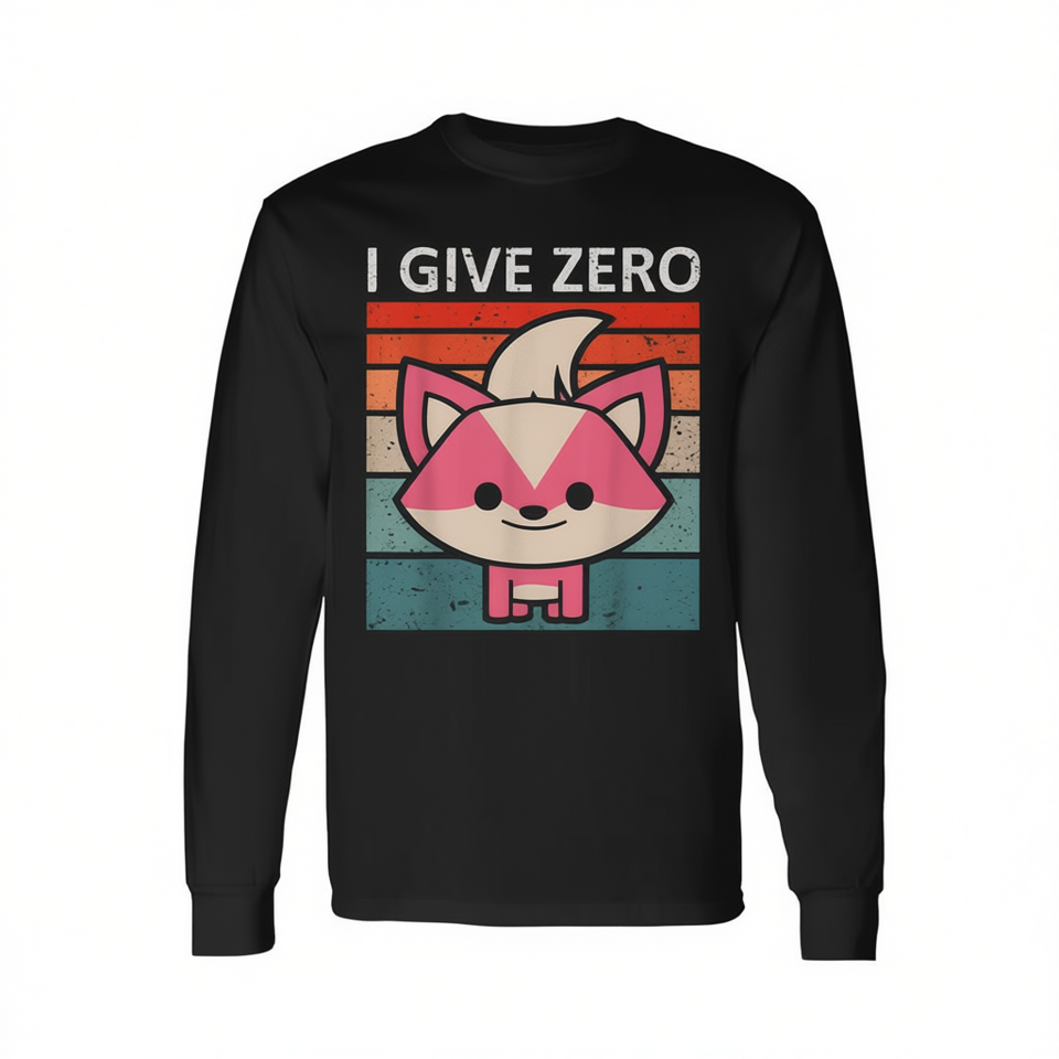 T-Shirt a Maniche Lunghe Zero Fox in Stile Retrò Ispirato alla Volpe per Uso Promozionale
