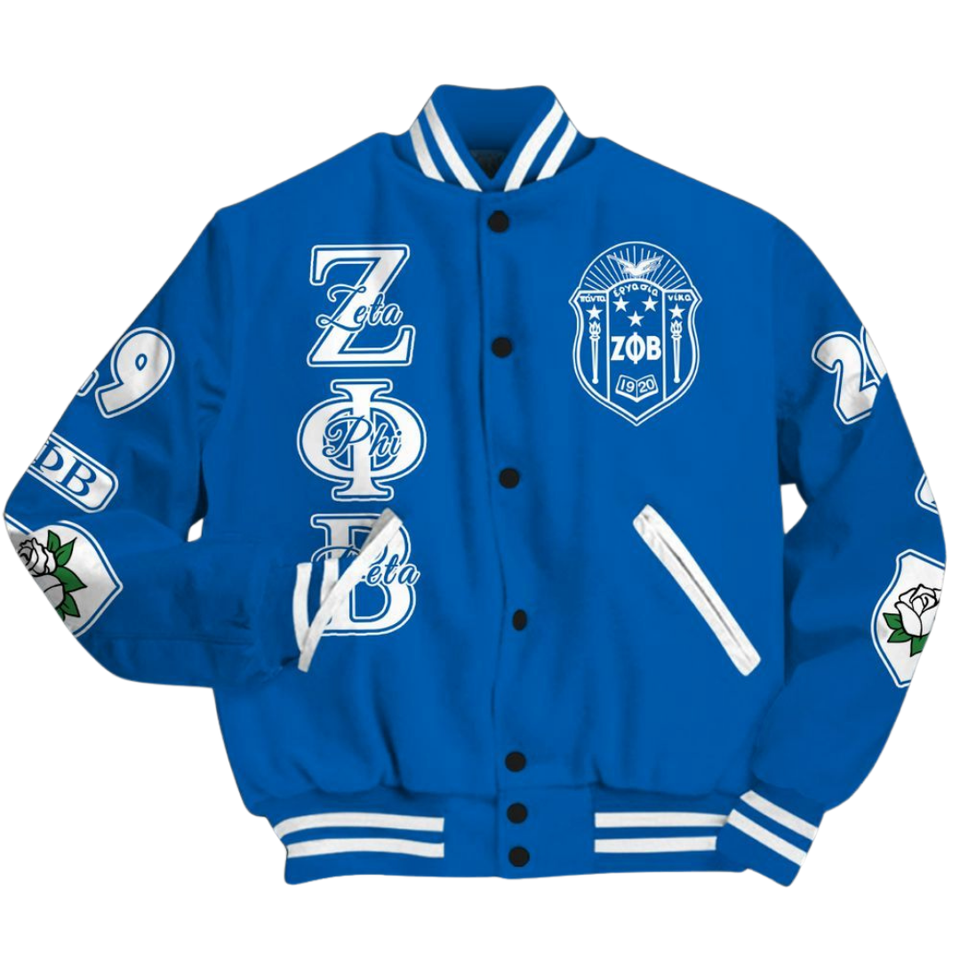 Zeta Phi Beta 1920 blu bianco fondatori Day Varsity Jacket Sorority Letterman ZPB greco vita ciniglia Patch Gear