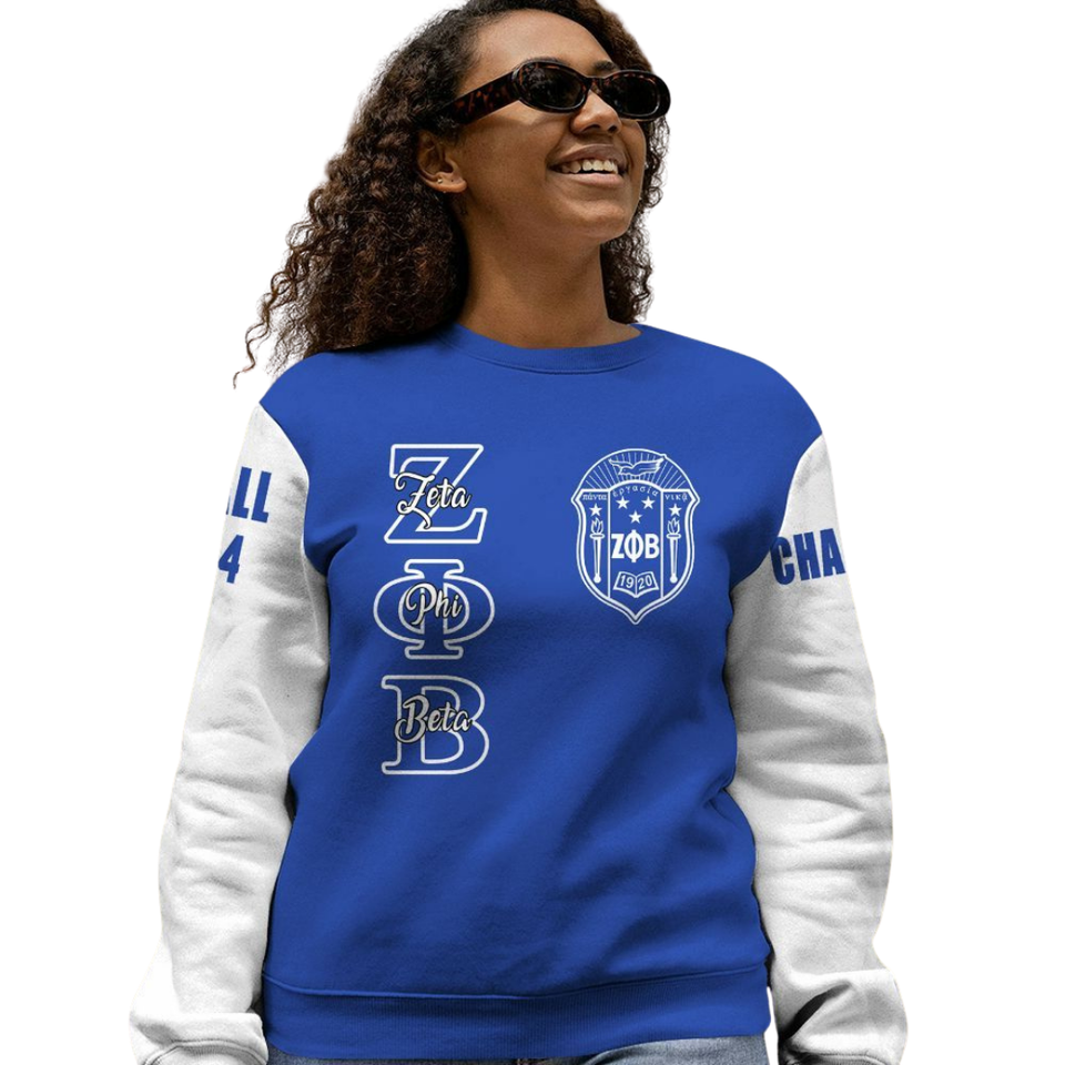 Felpa girocollo blu Zeta Phi Beta Sorority da donna con lettere greche ricamate 1920 Abbigliamento