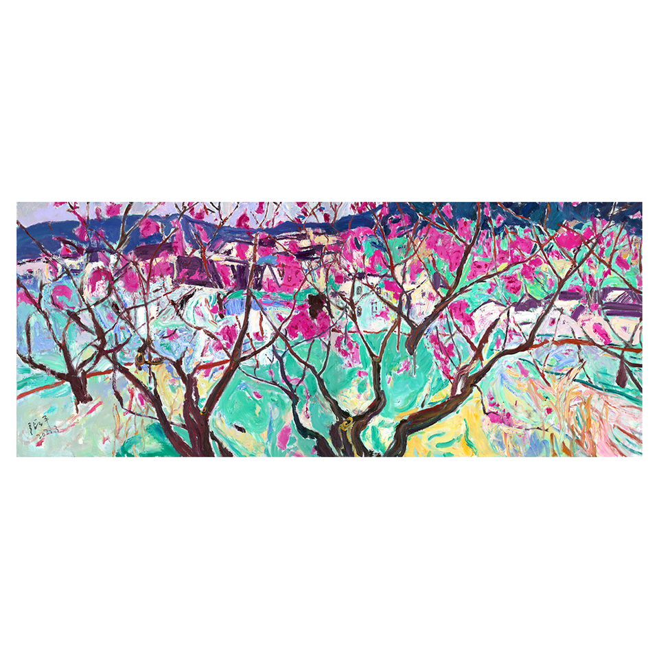 Riproduzione Realistica di Dipinto a Olio 'Fiori di Pesco' di Zhang Liping Ten Li, Arte Murale per Soggiorno e Camera da Letto