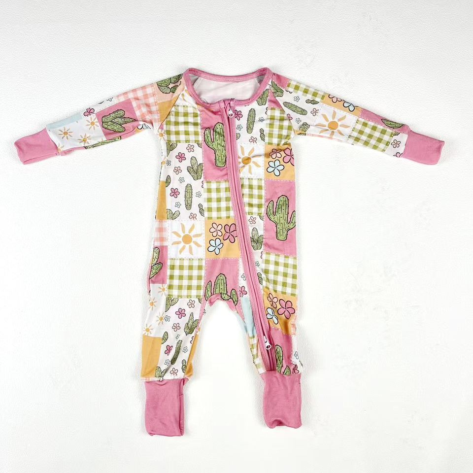 Pigiama per Neonati ZhengPai Personalizzato con Stampa Patchwork e Cerniera in Bambù, Tutina in Maglia per Bambini 0-12 Mesi