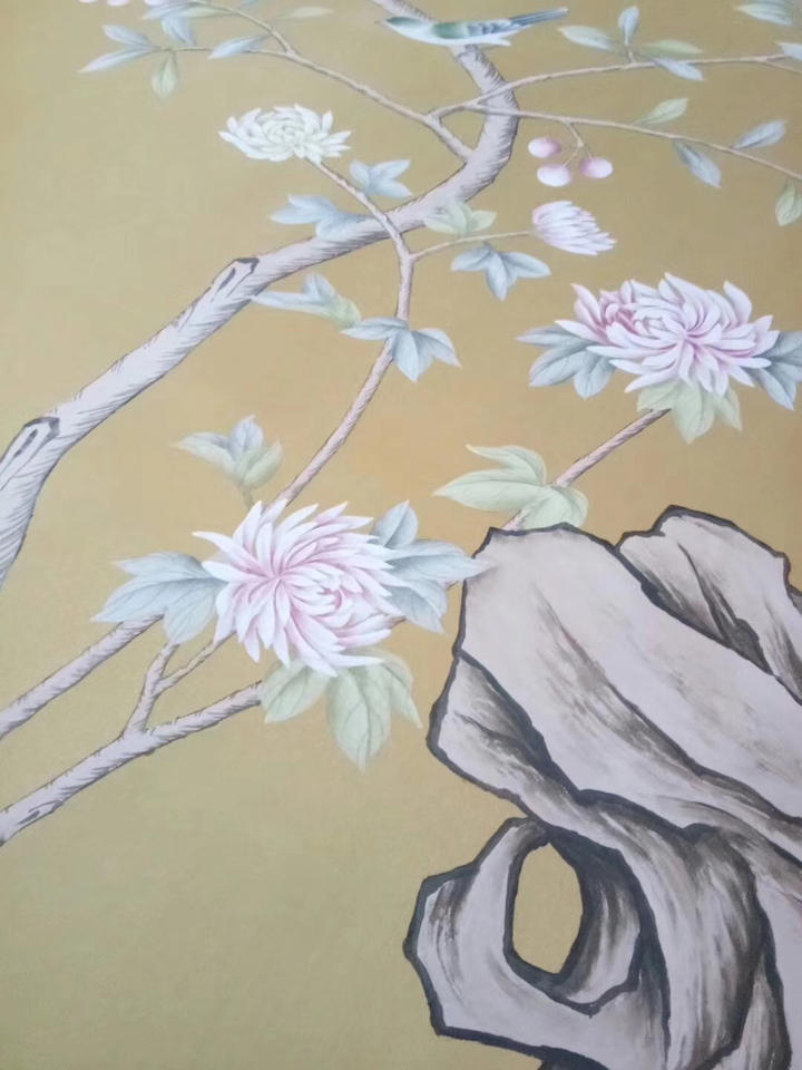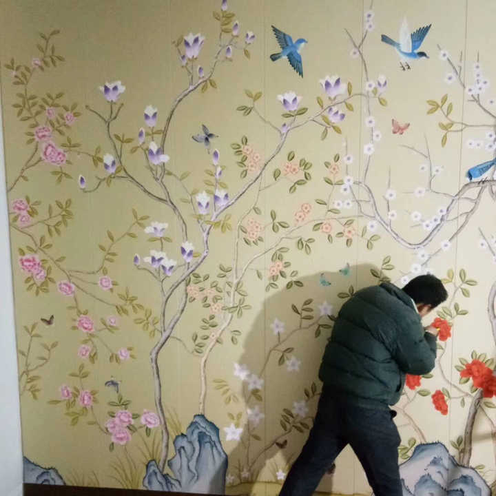 Name:luxury Chinoiserie silk hand-painted butterfly trees color wallpaper